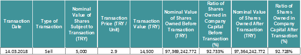 Notification regarding our company’s transactions executed on March 14, 2018 (today) on the shares of our direct subsidiary Doğan Gazetecilik A.Ş. is presented below.