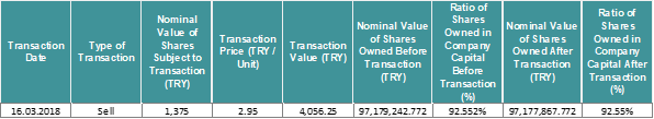 Notification regarding our company’s transactions executed on March 16, 2018 (today) on the shares of our direct subsidiary Doğan Gazetecilik A.Ş. is presented below.