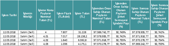 Şirketimiz' in doğrudan bağlı ortaklığı Doğan Gazetecilik A.Ş. hisselerinde 12.03.2018 tarihinde (bugün) yapmış olduğu işlemlere ilişkin tablo aşağıda yer almaktadır .