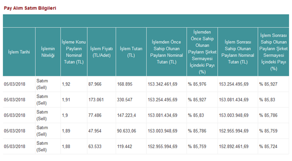 Şirketimiz' in doğrudan bağlı ortaklığı Milpa Ticari ve Sınai Ürünler Pazarlama Sanayi ve Ticaret A.Ş. hisselerinde