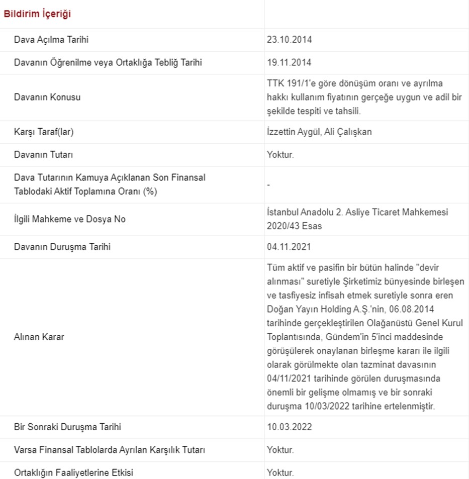 Konuya ilişkin olarak, ilgili mevzuat kapsamında kamuya açıklanması gereken gelişmeler olduğu takdirde, ayrıca açıklama yapılacaktır.